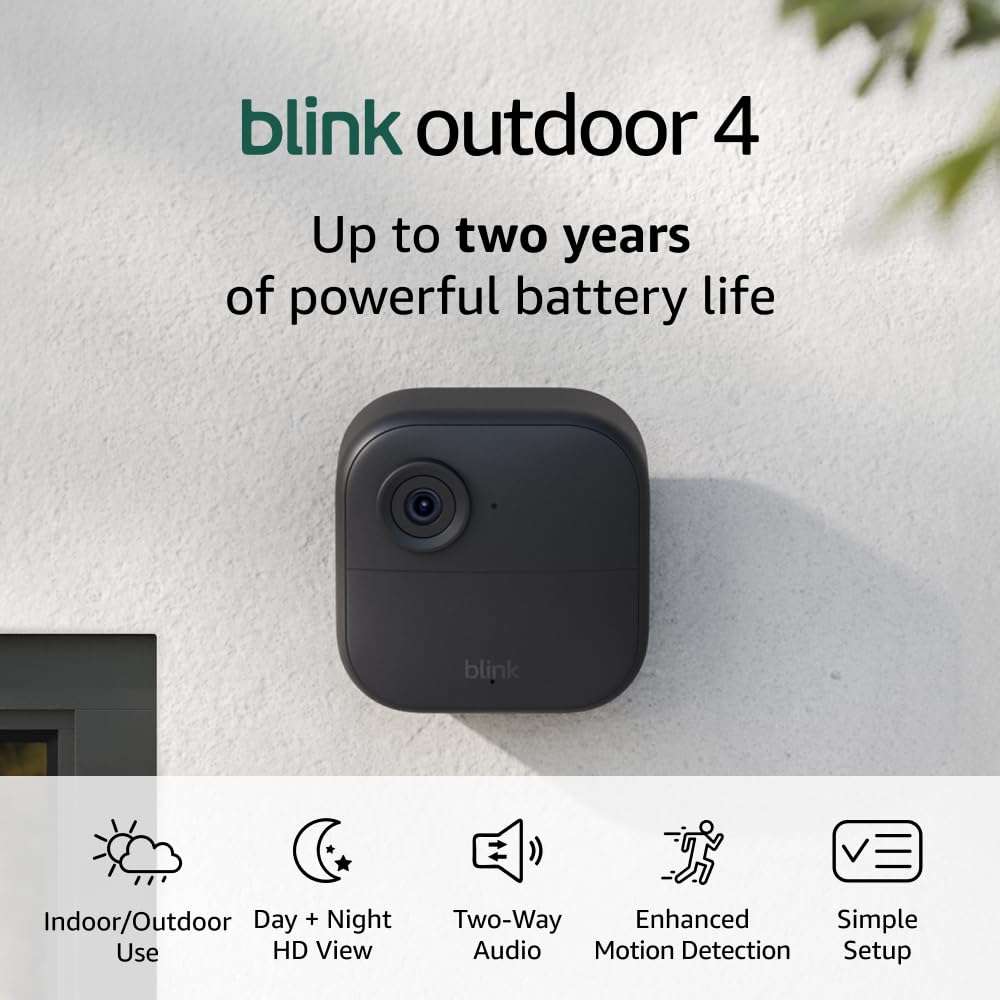 & Free ShippingBlink Outdoor 4 (4th Gen) – Wire-free smart security camera, two-year battery life, two-way audio, HD live view, enhanced motion detection, Works with Alexa – 3 camera system