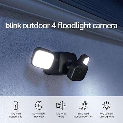 & Free ShippingBlink Outdoor 4 Floodlight Camera – Wire-free smart security camera, 700 lumens, two-year battery life, HD live view, enhanced motion detection, Works with Alexa- 1 camera system