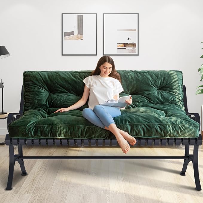 & Free ShippingMAXYOYO 6″ Futon Mattress Full Size, Velvet Thick Futons Sofa Couch Bed, Floor Mattress for Adults, Shredded Foam Filling (Frame Not Included), Green, 54×80 Inch