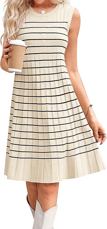 & Free ShippingOUGES Women’s 2025 Spring Maternity Dress Business Casual Outfits Pleated Sleeveless Crew Neck Ribbed Knit Short Dress