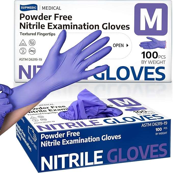 & Free ShippingNitrile Exam Gloves, Powder-Free Latex-Free Food Safe Cleaning First Aid Disposable Medical Glove, Purple 100 Pcs