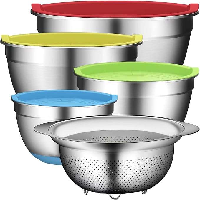 & Free ShippingMixing Bowl Set and Colander – Stainless Steel Mixing Bowls – Mixing Bowls with Lids Set – Kitchen Gadgets 2024 Nesting Salad Bowls with Strainer for Mixing & Preping & Baking, Multicolor