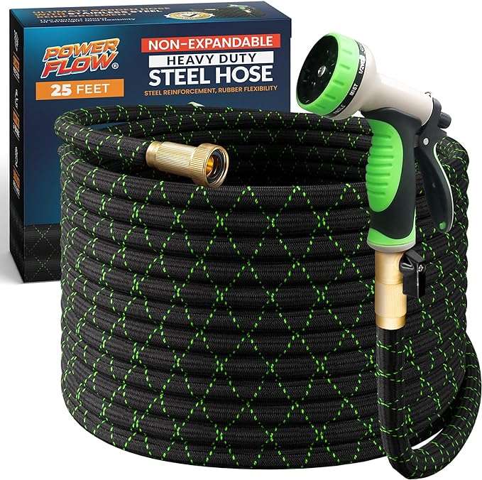 PowerFlow Garden Hose, NON-EXPANDABLE 25 Feet Premium Quality Stainless Steel MetalPowerFlow Garden Hose, NON-EXPANDABLE 25 Feet Premium Quality Stainless Steel Metal