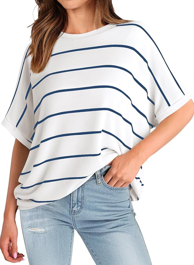 MIHOLL Womens Summer 2025 Striped Tops Batwing Short Sleeve Shirts Crewneck Casual Loose BlousesMIHOLL Womens Summer 2025 Striped Tops Batwing Short Sleeve Shirts Crewneck Casual Loose Blouses