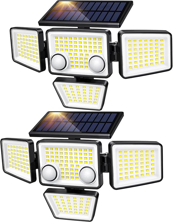 Solar Outdoor Lights – 3000LM 188 LED Motion Sensor Outdoor Lights, 4 Heads IP65 Waterproof