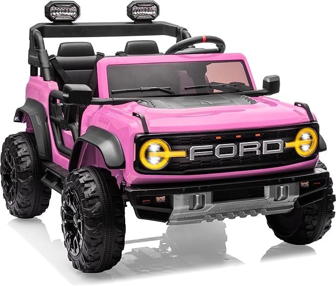 & Free Shipping24V Ride on Toys for Big Kids, Licensed Ford Bronco Raptor 2 Seater Ride on Cars with Remote Control, Ride on Truck w/ 4-Wheeler Suspension, 3 Speeds, Led Lights, Bluetooth (24V, Pink)